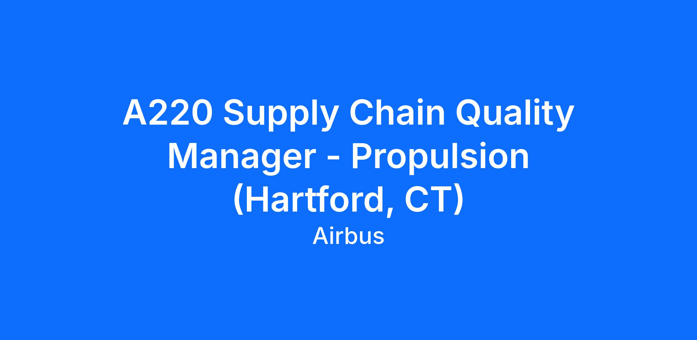 Airbus is committed to providing reasonable accommodations as an Equal Opportunity Employer to applicants with disabilities. If you require assistance or an accommodation to complete your application, please contact us at USCareers@airbus.comNotice: Know Your Rights: Workplace Discrimination is IllegalNotice: Pay Transparency Nondiscrimination (English)Aviso: Transparencia en el Pago No Discriminación (Spanish)Job Description:Airbus Commercial Aircraft is looking for a Supply Chain Quality Manager - Propulsion to join our Procurement department in Hartford, CT.The Procurement team's mission is to acquire indirect goods and services for Airbus commercial aircraft and helicopters, playing a major role in generating value and supplying to the overall performance of the company. Our team members ensure on-time delivery and on-quality of equipment and systems, drawing on their expertise in Industrial, Operations & Quality Management, and strong relationship building skills to problem-solve and proactively mitigate supply chain issues.How we care for you:Financial Rewards: Competitive base salary, incentive compensation which may include profit sharing schemes, retirement savings plan and the ability to participate in an Employee Stock Ownership Plan (“ESOP”)Work/Life Balance: Paid time off including personal time, holidays and a generous paid parental leave program.Health & Welfare: Comprehensive insurance coverage including medical (traditional and high-deductible health plans), prescription, dental, vision, life, disability, Employee Assistance Plan (“EAP”) and other supplemental benefit coverages.Individual Development: Upskilling and development opportunities through our global Leadership University, including unlimited access to 10,000+ e-learning courses focusing on ways to develop your employability, certifications, career path as well as the opportunity to participate in accelerated development programmes and both national and international mobility.At Airbus, we support you to work, connect and collaborate more easily and accessibly. Wherever possible, we support flexible working arrangements to stimulate innovative thinking.Your challenges:Responsible for On Time delivery of the propulsion systems.Responsible for working with supplier Program, Industrial, Supply Chain, and Quality leadership.Responsible for analyzing supplier's production value stream providing feedback on improvement opportunities to de-risk performance to plan.Collaborate with responsible Airbus employees across multiple functional organizations in the United States, Europe and suppliers to secure the On-Time and On-Quality Delivery of propulsion systems.Work with responsible suppliers to ensure timely implementation of vital corrective and preventive actions in support of Airbus targets.Consolidate and maintain an outlook of key industrial, quality, supply chain, and Risks & Opportunities to drive action plans with the support of the responsible propulsion suppliers.Integration of Supply Chain activities both with other regional procurement offices and central Propulsion Operations Procurement teams.Integrated supplier pictures of overall readiness towards required rates and review the Red/Amber during Control Tower and Industrial Reviews.Management of deviation to defined industrial targets communicated to all partners and corrective actions implemented with Supplier through root cause and eradication methods to mitigate reoccurrence.Your boarding pass:A Bachelor's Degree in aerospace or industrial engineering, supply chain management, logistics management, or an equivalent combination of education and experience required.Ten (10) years of experience in the aerospace or automotive industry in industrial planning, supply chain management, quality management, and continuous improvement required.Proven knowledge and expertise in Advanced Product Quality Planning, Risk Management, and Continuous Improvement (Lean Six Sigma) desirable.Experience leading industrial capacity and quality assessments.Certified Project Management Professional preferred.Lean Six Sigma Certified desired.Valid driver's license required.Valid Passport required.50% Domestic and International travel required.(Regular travel anticipated between Airbus sites and propulsion suppliers.)This position is located onsite at our office in Hartford, ConnecticutPhysical Requirements:The physical demands are primarily associated with travel (ability to travel by car and plane and carry luggage), walking/standing/sitting at supplier sites, communicating (hearing, speaking, typing), and working for long periods of time on a computer (vision, sitting).This position requires that the job holder be a US Person under ITAR definition (i.e. U.S. Citizen, green card holder or person covered under our existing ITAR license)Take your career to a new level and apply online now!A full job description will be provided to candidates who progress to the interview stage or any candidate upon request.This job requires an awareness of any potential compliance risks and a commitment to act with integrity, as the foundation for the Company’s success, reputation and sustainable growth.Company:Airbus Americas, Inc.Employment Type:US - Direct HireExperience Level:ProfessionalRemote Type:FlexibleJob Family:Supplier Management ------Job Posting End Date: 04.24.2026------Airbus provides equal employment opportunities (EEO) to all employees and applicants for employment without regard to race, color, religion, sex, sexual orientation, gender identity, national origin, age, disability, genetics, pregnancy, marital status, veteran status or other legally protected status. In addition to federal law requirements, Airbus complies with applicable state and local laws governing nondiscrimination in employment in every location in which the company has facilities. This policy applies to all terms and conditions of employment, including recruiting, hiring, placement, promotion, de
