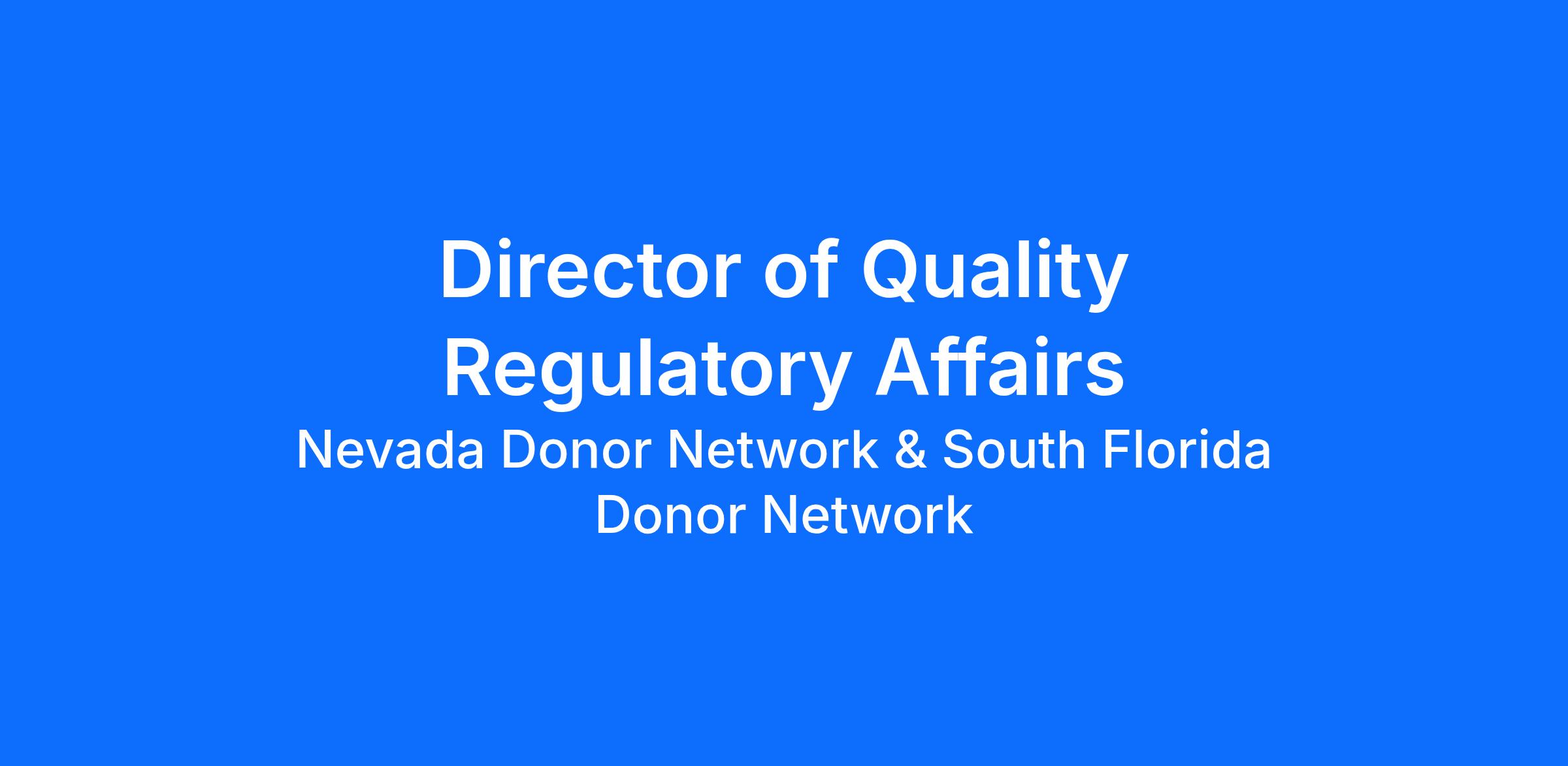 Full-time Description POSITION SUMMARY The Director of Quality & Regulatory Affairs (DQRA) is responsible for assisting the Chief Quality Officer (CQO) with the execution of the SFDN Quality Management System including continual quality improvement throughout the organization. Directs the development, implementation and monitoring of quality systems and regulatory compliance related to internal standards, industry standards, state, local and federal regulations, departmental and organizational goals and processes. Assist with the overall direction for consistency and training for those managed. The Director serves as an advocate and resource for quality programs and provides interpretations of regulations and standards for consideration in the formulation of business strategies related to organ, tissue, and ocular recovery as well as administrative operations. ESSENTIAL FUNCTIONS Essential Functions Statement(s) • Directs, manages, and provides oversight for all activities related to the Quality Management System (QMS) and performance improvement.o Develops and maintains a quality plan to ensure the best service possible. Oversees the implementation of the SFDN’s QMS. At a minimum, activities will include and are not limited to Licensing, Performance Improvement, Customer Complaint, Planned Deviation, Corrective Action/Preventive Action, Auditing, Document Control, Chart QA, Validation, and Death Record Review Systems. o Promotes quality assurance with the expectation of accurate donor medical records and data elements, and validation of all performance data. o Implements, monitors and reviews systems and programs instituted to provide consistent adherence to policies related to organ, tissue and ocular recovery, laboratory, and administrative operations. o Responsible for the administration of the electronic quality management system platform. • Ensures organizational compliance with regulatory standards including AHCA, AOPO, OPTN/HRSA, CDC, and CMS. Ensures all regulatory and governmental licenses are kept current.a. Monitors and analyzes information release and activity pertaining to federal, state, and industry standards as it relates to regulatory compliance and organizational operations.b. Ensures policies and procedures reflect regulations and standards and collaboratively leads the revision of policies and procedures, as needed to reflect any applicable regulatory changes. • Will be listed as the Patient Safety Contact with OPTN/HRSA as well as serve as the Patient Safety Officer. a. The Patient Safety Officer will be responsible for monitoring and investigating patient safety events in real time, serving as the first point of contact for families, hospital partners, and HRSA; documenting and reporting incidents and adverse events to OPTN.• Develops, oversees and maintains a quality plan that aligns to the SFDN Quality Manual and Quality Excellence Program (QEP) in order to advance the SFDN mission and core purpose.• Deploys and maintains an effective QMS to foster a culture of continuous improvement through data analysis in collaboration with all SFDN departments.a. Promotes use of the organization’s quality improvement process by evaluating, improving, improving workflow, and maximizing process efficiencies. • Assists in the development and analysis of all statistical performance measurements of organ, tissue, and administrative operations, and quality and regulatory compliance throughout the organization. Conducts ongoing monitoring and data analysis, trending and reporting of the quality management systems including but not limited to occurrences (non-conformances), planned deviations, customer complaints, sentinel events, and adverse reactions and outcomes. Identify opportunities for improvements. a. Reports meaningful data related to activity levels, quality measures, and regulatory compliance to SFDN leadership, staff, advisory board members, and various stakeholders.• Collaborates with other organ, tissue and recovery agencies to keep current on industry best practices and works to deploy the same in the organization.• Represents SFDN at various meetings and conferences including the Association of Organ Procurement Organization (AOPO). Promotes SFDN and the brand through actively participating and presenting at these conferences. • Manages the selection, training, development, and performance of assigned staff to retain a motivated, professional workforce for the department.• Recruits and selects applicants for job vacancies considering the requirements of the job and the skills/abilities of the applicants.• Establishes and communicates job responsibilities as well as employee performance expectations to assure mutual understanding of desired results.• Identifies training and/or development opportunities that will assist the employee in achieving enhanced job performance and/or career objectives.• Constructively coaches and counsels for success to seek optimal employee performance.• Builds support and alliances between and among departments to promote the organizational core values.• Conducts performance reviews in alignment with job expectations, as well as reviews salary accordingly. • Develop and maintain an internal audit program to ensure the application of organization policies and procedures as well as the adherence to applicable regulatory and accrediting regulation and standard requirements in the actions of the organization. a. Oversees all phases of audits initiated by regulatory agencies and external customer-initiated audits. b. Liaison for formal resolutions to compliance concerns brought forth by auditors including regulatory bodies.c. Oversees all phases of the organization’s qualification audits of its vendors. • Maintains the document control system for the organizationa. Assists in the review, creation, update, and maintenance of all organizational standard operating policies and procedures. Ensures that all poli