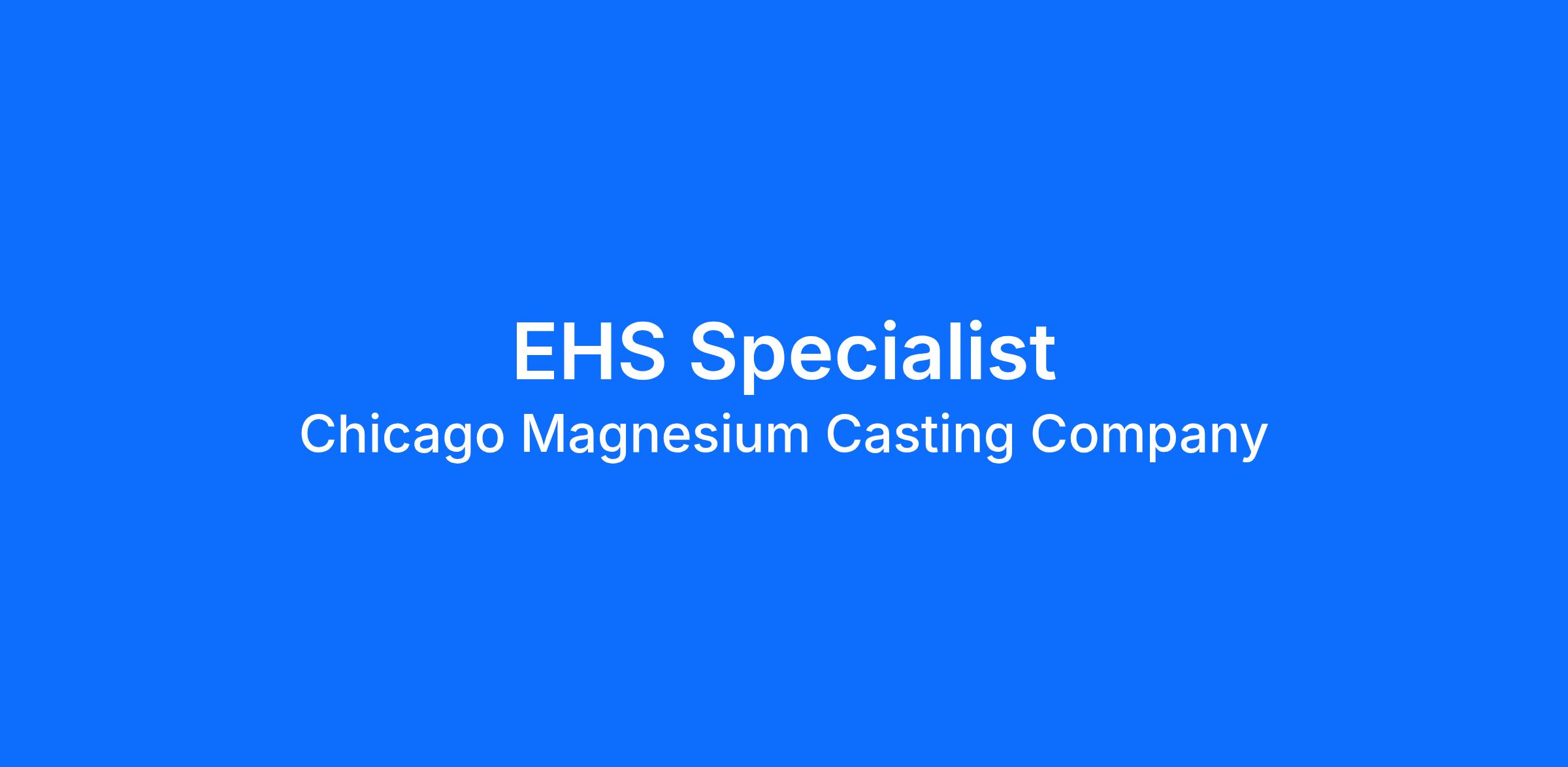 Full-time Description Summary:The primary focus for this position is to ensure that Chicago Magnesium complies with all applicable environmental, health, Safety and security regulations. With the support and guidance of the EHS&S Manager, the ideal candidate will be responsible for improving the productivity of foundry employees through effective development, coordination and presentation of training and development programs for all employees. The EHS&S Specialist will ensure site compliance with all relevant environmental and safety related federal and state laws, coordinate/deliver facility required training, facilitate safety team and coordinate EHS audits and record keeping.Duties and Responsibilities:· Manage the maintenance and implementation of safety programs, compliance plans, and initiatives.· Lead environmental and/or safety committees, facilitating their activities· Identifying and assessing potential hazards and developing strategies to mitigate risks· Participate in the investigation of incidents, near misses and property damage incidents. Ensure follow-up is done to minimize future exposure and proper records/documents are maintained.· Conduct, coordinate and track various training to support company programs including but not limited to forklift license program, emergency response team training and first aid.· Conduct routine PPE assessments and safety observations to ensure compliance with regulatory agencies, company environmental, health, and safety policies, procedures and practices.· Assist in the oversight of the Worker’s Compensation program and maintain OSHA 300 logs.· Coordinate annual medical monitoring of yearly eye and hearing examinations· Maintain internal and regulatory reporting including data collection and reporting including but not limited to air, storm water and surface water discharge.· Ensure the company meets all its legislative compliance obligations with OSHA, EPA, and fire codes.· Serve as primary contact for all regulatory agencies for inspections, permitting, reporting (air, water, waste).· Maintain compliance with permits, government regulations and other industry practices.· Keep abreast of any safety and environmental law or regulation changes that impact the organization.· Communicate safety performance & EHS metrics to plant management· Work effectively as a team member with other members of management and human resources staff.· Other duties as assigned.Benefit information available on company website.Chicago Magnesium Casting and Midwest Aerospace Casting, LLC. provides equal employment opportunities to all employees and applicants for employment and prohibits discrimination and harassment of any type without regard to race, color, religion, age, sex, national origin, disability status, genetics, protected veteran status, sexual orientation, gender identity or expression, or any other characteristic protected by federal, state or local laws. Requirements Experience and Education:· BS in Occupational Health and Safety or related field (preferred)· 3 –5 years experience in manufacturing environment with responsibility for Environmental, Health and Safety(preferred)· OSHA 10 and/or 30 certification (preferred but not required)· Demonstrated ability to work independently with attention to detail and organizational abilities.· Proficiency in using relevant software for data analysis, report writing, and record keeping· Superior analytical/ problem solving, written and verbal communicationsKey Competencies:· Strong technical knowledge of regulations and standards· Risk management expertise· Excellent communication and interpersonal skills· Analytical and leadership capabilities.· Problem Solving· Customer Focus· Results driven· Detail Oriented· Organizational Agility· Motivating others· Approachability· Perspective· CreativityBenefit information available on the company website Salary Description $60,000 - $75,000 BOE