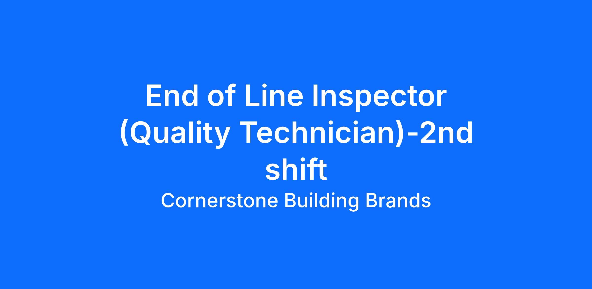 Job DescriptionBase Pay: $22.50 - 23.50 per hourDifferential: + $1.50 2nd Shift: 2:30 pm - 1:00 am, Mon-Thu, plus overtime on Fri & Sat based on production needsThe Quality Technician – End of Line Inspector (EOL) performs detailed inspections of fabricated parts, in‑process products, and outgoing shipments to ensure compliance with Cornerstone Building Brand quality standards and specifications. This role supports quality assurance through inspections, testing, documentation, and collaboration with cross‑functional teams.Understands and follows all required safety rules in a manufacturing environment.Monitors, inspects, and tests in‑process and finished goods to ensure quality standards are met; records and reports all results.Prepares clear and accurate inspection reports, audit summaries, test documentation, and daily quality activity updates.Conducts product and material tests using appropriate tools and equipment.Supports quality objectives by assisting with planning, problem‑solving, and continuous improvement initiatives, including basic Root Cause Analysis.Verifies calibration status of inspection equipment and maintains calibration records.Participates in internal and external audits, including start‑up and changeover audits.Ensures adherence to production practices, quality standards, and documentation requirements, including nonconforming material processes.Performs additional duties or projects as assigned.QualificationsHigh school diploma or equivalent.Ability to read and comprehend policy manuals, safety procedures, operating instructions, and basic correspondence, and to communicate information effectively in one on one or small group settings.Ability to follow written, verbal, or diagrammed work instructions and apply practical problem‑solving in situations involving multiple variables.Ability to perform basic math calculations, including addition, subtraction, multiplication, division, fractions, and percentages.High attention to detail and concentration.Ability to meet deadlines and work effectively with diverse teams.Ability to use various measuring devices (e.g., tape measure, protractor, micrometer).Ability to operate a tablet or laptop computer.Works in a production environment with exposure to hot and cold temperatures, noise, and machinery.Additional InformationSite Address: 5001 D Street NW Auburn, WA, 98001All your information will be kept confidential according to EEO guidelines. Why work for Cornerstone Building Brands? Our teams are at the heart of our purpose to positively contribute to the communities where we live, work and play. Full-time* team members receive** medical, dental and vision benefits starting day 1. Other benefits include PTO, paid holidays, FSA, life insurance, LTD, STD, 401k, EAP, discount programs, tuition reimbursement, training, and professional development. *Full-time is defined as regularly working 30+ hours per week. **Union programs may vary depending on the collective bargaining agreement. Cornerstone Building Brands is an Equal Opportunity Employer. All qualified applicants will receive consideration for employment without regard to race, color, religion, sex, sexual orientation, gender identity, national origin, age, pregnancy, genetic information, disability, or status as a protected veteran. You can find the Equal Employment Opportunity Poster here. You can also view Your Right to Work Poster here along with This Organizations Participation in E-Verify Poster here. If you'd like to view a copy of the company's affirmative action plan for protected veterans or individuals with disabilities or policy statement, please contact Human Resources at 281-897-7788 or [email protected]. If you have a disability and you believe that you need a reasonable accommodation in order to search for a job opening or to submit an online application, please contact Human Resources at 281-897-7788 or [email protected]. This email is used exclusively to assist disabled job seekers whose disability prevents them from being able to apply online. Only emails received for this purpose will be returned. Messages left for other purposes, such as following up on an application or technical issues not related to a disability, will not receive a response. All your information will be kept confidential according to EEO guidelines. California Consumer Privacy Act (CCPA) of 2018 Must be at least 18 years of age to apply. Note to External RecruitersCornerstone Building Brands does not accept unsolicited resumes and will not pay fees for any candidate submissions that were not expressly authorized. Notice of Recruitment FraudWe have been made aware of multiple scams whereby unauthorized individuals are using Cornerstone Building Brand's name and logo to solicit potential job-seekers for employment. In some cases, job-seekers are being contacted directly, both by phone and e-mail. In other instances, these unauthorized individuals are placing advertisements for fake positions with both legitimate websites and fabricated ones. These individuals are typically promising high-paying jobs with the requirement that the job-seeker send money to pay for things such as visa applications or processing fees. Please be advised that Cornerstone Building Brands will never ask potential job-seekers for any sort of advance payment or bank account information as part of the recruiting or hiring process.