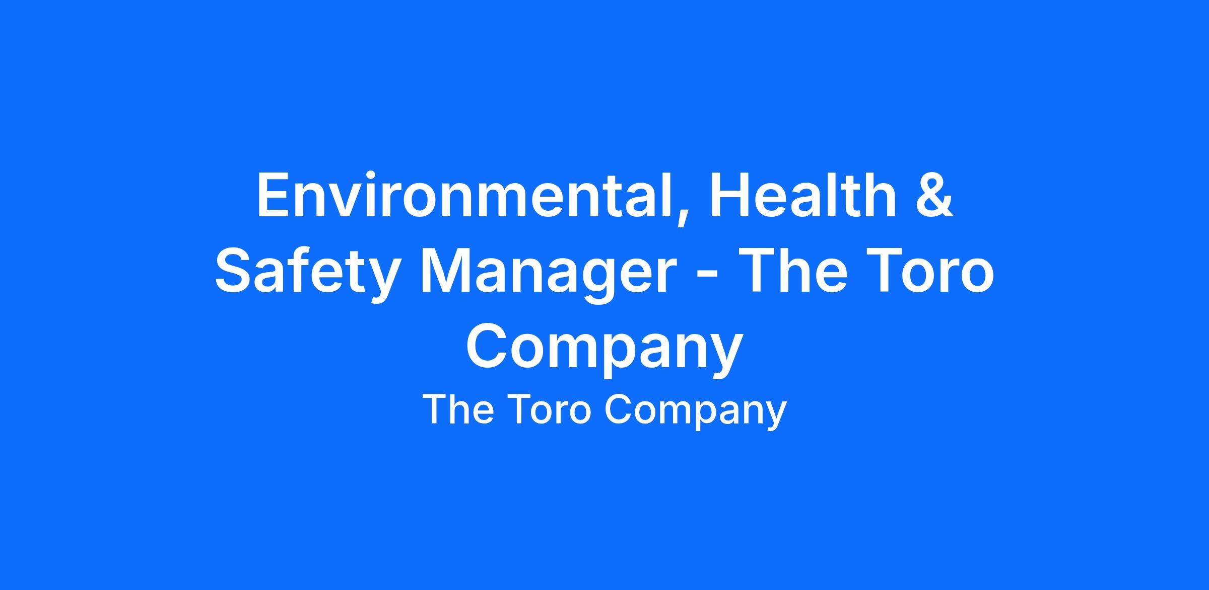 Applicants must be legally authorized to work in the United States. We are unable to sponsor or take over sponsorship of a school/employment or any other visa , regardless of expiration date, now or in the future.Who Are We? The Toro Company's Shakopee plant is the largest non-engine supplier to toro with 125,000 square feet of production facility. The Toro Company (NYSE: TTC) is a leading worldwide provider of innovative solutions for the outdoor environment, including turf, snow and ground-engaging equipment, and irrigation and outdoor lighting solutions. This location produces professional and residential component products. Employees at this modern facility provide precise cutting products, machine components, tooled stampings, and metal fabrication for assembly at other TTC manufacturing facilities. For over 100 years, our ideas have transformed the way professionals and homeowners care for their outdoors, including many leading sports venues and historic sites around the world. The Environmental, Health and Safety (EHS) Manager is responsible for providing daily direction, developing, planning, and coordinating activities within the framework of The Toro Company EHS Program. The EHS Manager must be skilled in interpreting, communicating, and complying with regulations that apply across business operations. Exhibits exceptional leadership skills and able to work across functional boundaries to achieve a zero-harm culture. This role will have site EHS Program responsibility at the Shakopee, MN facilityWhat Will You Do? In order to grow and build a successful career with The Toro Company, you will be responsible for: Partner with site leadership to promote safety, health, and environmental excellence.Implement and standardize Toro’s Safety Management System across the region.Ensure compliance with all federal, state, local, and corporate EHS requirements.Lead hazard identification, risk assessment, and injury elimination efforts.Oversee regulatory programs (e.g., machine guarding, PPE, environmental compliance).Identify EHS training needs to ensure compliance, understanding, performance improvement.Establish and track EHS goals, metrics, and continuous improvement initiatives.Conduct facility audits and ensure timely closure of corrective actions.Support incident investigations and implement effective corrective measures.Manage regulatory inspections and related documentation.Collaborate with engineering and operations on equipment, facilities, and capital projects.Build relationships with internal teams, vendors, insurers, and regulatory agencies.Promote ergonomic, wellness, and injury prevention programs.What Do You Need? To be considered for this role, an individual should meet the following minimal requirements:Bachelor’s degree in a related field required such as Occupational Health and Safety, Environmental, Industrial Engineering, or Engineering Technology.3+ years leading and building comprehensive safety programs with evidence of continuous improvement.Applicable EHS certificate preferred (i.e. CSP, CIH, OHST). Must have the ability to obtain a professional certification within 3 years after starting in the EHS Manager role.Strong manufacturing business acumen with familiarity in manufacturing and material handling preferred.Excellent communication skills, both formal and informal, at all levels of the organization.Strong analytical, negotiating, presentation and facilitation skills.Ability to lead and direct teams and/or committees.Ability to conceive, develop, and execute EHS related projects within a manufacturing environment.Demonstrated knowledge of delivering hands on health and safety training.Ability to develop, implement, and coordinate comprehensive health and safety incident prevention programs.Skilled in the standards, concepts, practices, and procedures within the health, safety and environmental fields.Ability to work independently with minimal supervision.Infrequent travel; up to 10% by automobile and airWhat Can We Give You? At The Toro Company, we are always working to make sure our employees know just how valued they are. In addition to a competitive salary, an affordable and top tier medical/dental/vision plan, 401k, and many other great benefits. Dress for your day - We know you're more productive when you're comfortable, which is why employees are encouraged to take advantage of our casual, office-plant blended environment. Wellness - In addition to physical wellbeing, TTC offers a variety of mental health, financial health, and other types of resources to every full-time employee. Volunteerism - The Toro Company is proud to provide employees 20 hours of paid time to volunteer in the community. Growth Opportunities – TTC prides itself on giving our employees the chance to grow their careers. Tuition reimbursement, opportunities to move into new areas of interest, and promotion opportunities are a few examples. Competitive Salary – The pay range takes into account skills, experience, education, and location. It is not common to be hired at or near the top of the range; compensation decisions are dependent on the facts and circumstances of each case. A reasonable estimate of the annual pay range is between $120200 - $150200. Cash compensation is one piece of our competitive total rewards package. You may be eligible to participate in an incentive program, which rewards employees based on individual and organizational performance. Eligibility and award amounts are determined by company policy and performance metrics. If you need to, you can access your pay early with the dailypay app.The Toro Company is an Equal Opportunity Employer. We consider all qualified applicants based on merit and do not discriminate on the basis of race, color, religion, sex (including pregnancy, gender identity, and sexual orientation), parental status, national origin, age, disability, genetic information, military service, or other non-merit factors. We are committed to c