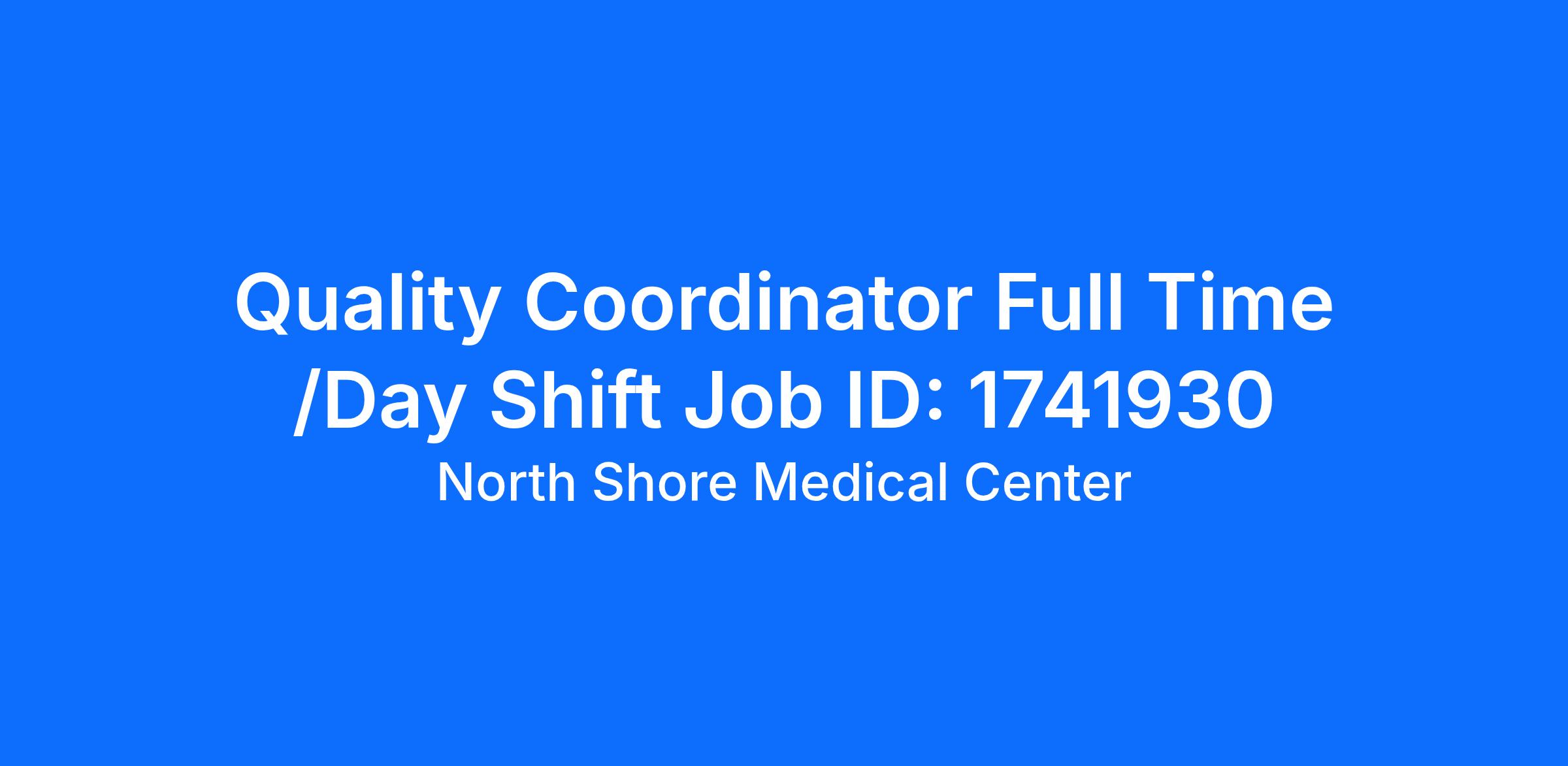 We are North Shore Medical Center Our primary function is to offer continuous nursing, medical, and other health and social services on a 24-hour basis, under physician-directed care and RN supervision. We service a multitude of patients and their families across our vast network, while remaining committed to the professional development of our staff, the functional improvement of our patients, and the cultivation of strong partnerships within our communities. WHAT WE OFFER An essential/stable and growing company with many opportunities for training and advancement within the medical field that all employees and team members (including Full-Time and Part-Time) can benefit from. Hourly pay is negotiable based on experience. We offer competitive market pay and opportunities for bonuses depending on great work performance (bonuses only apply for full-time). Comprehensive Employee Benefits: Full-Time employees are eligible for various plans for medical, dental, and vision insurance Position Summary: The Quality Coordinator, under the direction of the QMO (Quality and Infection Control), is a licensed professional nurse that works collaboratively with the health care team, is customer focused and strives to meet unit and hospital goals in order to promote quality care for the stroke patients. Position Qualification: 1 to 2 years of clinical experience in ED, Critical Care, or Neuro ICU Unit. Proficient in computer applications Knowledge of general medical theories and practice. Experience in data collection, entry, and analysis required. Foreign Medical experience accepted Required Licenses/Certifications: ACLS and BLS certification. Communication Skills: Ability to effectively communicate in writing and orally with all levels of the organization.