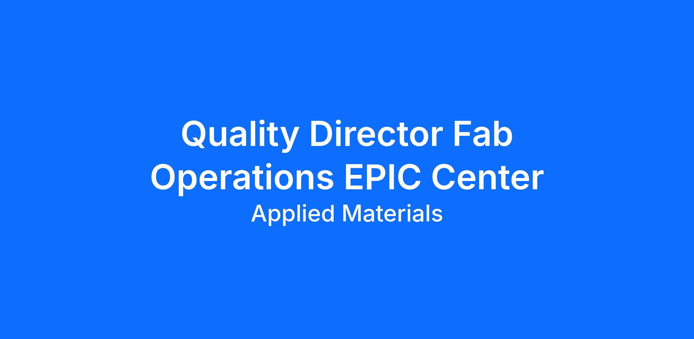 Who We AreApplied Materials is a global leader in materials engineering solutions used to produce virtually every new chip and advanced display in the world. We design, build and service cutting-edge equipment that helps our customers manufacture display and semiconductor chips – the brains of devices we use every day. As the foundation of the global electronics industry, Applied enables the exciting technologies that literally connect our world – like AI and IoT. If you want to push the boundaries of materials science and engineering to create next generation technology, join us to deliver material innovation that changes the world. What We OfferSalary:$180,500.00 - $248,500.00Location:Santa Clara,CAYou’ll benefit from a supportive work culture that encourages you to learn, develop, and grow your career as you take on challenges and drive innovative solutions for our customers. We empower our team to push the boundaries of what is possible—while learning every day in a supportive leading global company. Visit our Careers website to learn more. At Applied Materials, we care about the health and wellbeing of our employees. We’re committed to providing programs and support that encourage personal and professional growth and care for you at work, at home, or wherever you may go. Learn more about our benefits. Key ResponsibilitiesProvide leadership and responsibility for EPIC overall quality management to include all interfaces:1. Lab Operations Quality as relate to EPIC2. Customer Quality Interfaces as relate to EPIC3. Security / Facilities and support interface for Quality as relate to EPIC4. Business Unit interfaces as relate to product development, hardware qualification as part of PDP: Product Development Process5. Global Quality interfaces for internal audits, calibration, ISO Certification, Management Review and governance and all Quality functions.Additional ResponsibilitiesProvide leadership and responsibility for the overall quality management system.Enhance quality performance and capabilities through early involvement, enforcement of quality systems and on-going engineering supportProvide day to day management and support to both quality personnel and internal customers for all Q&R issues/concernsLead early involvement from design stage of tooling, machines and components to understand the quality function deployment and ensure functions are able to deliver to the quality levels consistentlyDrive the investigation of all customer complaints and facilitate resolution as well as successful completion of all related corrective and prevention actionsWork closely with business segments to assure downstream customer requirements are metSet performance measures to monitor business unit’s quality performanceRecruit, train, develop and provide performance guidance to the assigned team.Assist teams members to execute on business improvement efforts and projects. Identify issues and challenges, measure and validate results, successfully implement solutions, and develop control plans to ensure continuation of improvements from design to end-of-life. Ensure that all project documentation is maintained accurately.Functional KnowledgeDemonstrates broad and comprehensive understanding of different systems, theories and practices. Semiconductor lab and fab experience a must.Business ExpertiseApplies broad industry and commercial awareness to drive financial and operational performance across Quality EPIC scope.LeadershipLeads through EPIC Quality business plans and contributes to the development of segment/functional strategyProblem SolvingDirects the resolution of highly complex or unusual business problems applying advanced analytical thought and judgment ImpactGuided by segment/functional strategy, impacts results of a department, business unit or sub-function or facilitates the work done by other segments/functions by providing support to impact the businessInterpersonal SkillsNegotiates and influences the opinions of others at the senior executive level and in external organizations; exercises sensitivity to the audience Position requires understanding of Applied Materials global Standards of Business Conduct and compliance with these standards at all times. This includes demonstrating the highest level of ethical conduct reflecting Applied Materials' core values.Executive Quality Leader for EPIC Leading Edge Development Facility for Applied Materials research lab experience and academia partnership experience desired.Additional InformationTime Type:Full timeEmployee Type:Assignee / RegularTravel:Yes, 20% of the TimeRelocation Eligible:YesThe salary offered to a selected candidate will be based on multiple factors including location, hire grade, job-related knowledge, skills, experience, and with consideration of internal equity of our current team members. In addition to a comprehensive benefits package, candidates may be eligible for other forms of compensation such as participation in a bonus and a stock award program, as applicable.For all sales roles, the posted salary range is the Target Total Cash (TTC) range for the role, which is the sum of base salary and target bonus amount at 100% goal achievement.Applied Materials is an Equal Opportunity Employer. Qualified applicants will receive consideration for employment without regard to race, color, national origin, citizenship, ancestry, religion, creed, sex, sexual orientation, gender identity, age, disability, veteran or military status, or any other basis prohibited by law.In addition, Applied endeavors to make our careers site accessible to all users. If you would like to contact us regarding accessibility of our website or need assistance completing the application process, please contact us via e-mail at Accommodations_Program@amat.com, or by calling our HR Direct Help Line at 877-612-7547, option 1, and following the prompts to speak to an HR Advisor. This contact is for accommodation requests only and cannot be used t