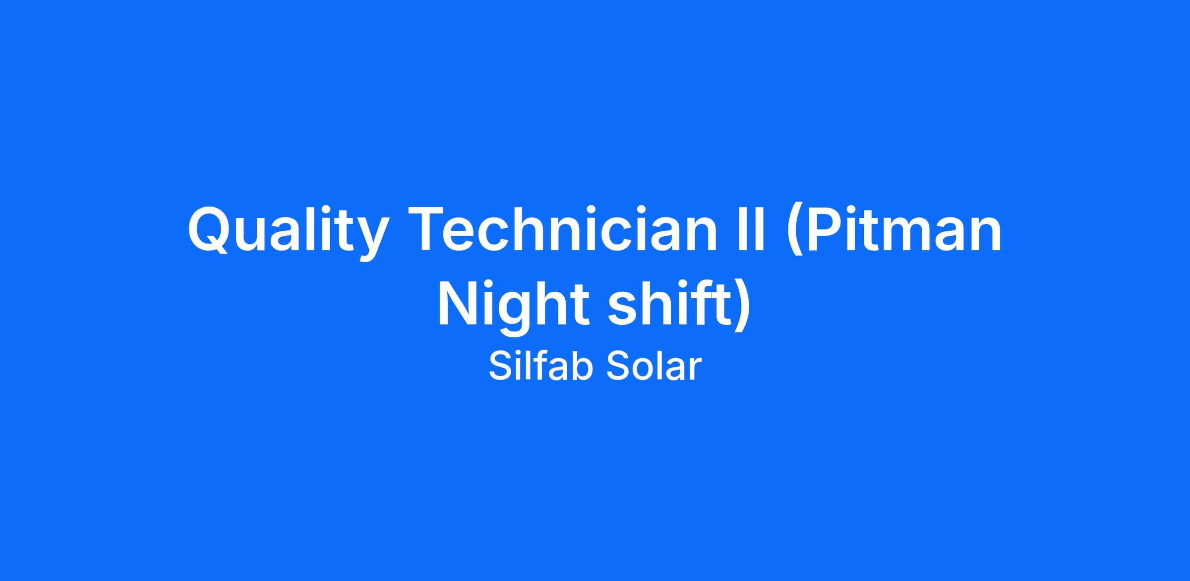 Company DescriptionMaking a difference in the world by reducing carbon emissions and improving access to clean energy with every module we make. Our purpose is to make a difference in the world by reducing carbon emissions and improving access to clean energy with every module we make.At Silfab Solar, the energy of our people is the power behind our success. Our employees actively shape the solar innovations of tomorrow, while adhering to the highest ethical operating standards and promoting a respectful and safe workplace for our diverse workforce. Our state-of-the art facilities in the US and Canada engineer and design the latest generation of solar products and utilize advanced manufacturing technology to produce high-efficiency PV cells and modules intended to outperform the market. As a profitable and rapidly expanding company in one of the fastest-growing sectors in the renewable energy industry, Silfab provides you with an incredible opportunity to build your career and contribute to a sustainable future. We are committed to investing in our employees, providing a dynamic and supportive environment for learning and professional growth. We offer competitive pay, generous benefits, and opportunities for advancement, but more importantly, we offer you the ability to make a real difference in the world.Together we can create a brighter, cleaner future for generations to come.Job DescriptionSummary of Position The Quality Technician II is responsible for ensuring the overall quality and compliance of products or services within a company. This position is typically a more advanced role than Quality Technician I, requiring a higher level of expertise and experience in quality control and assurance processes. This position is for Pitman Night shift, a rotating 12-hour shift that runs 6pm-6am.Essential Duties and Responsibilities Inspecting output samples using industry-appropriate methods Checking that the assembly or production line adheres to standards and procedures and complying with legal requirements Reviewing blueprints and specifications to compare to produced goods Recording inspection results by completing reports, summarizing re-works and wastes and inputting data into quality database Training the production team on quality control measures to improve product excellence Proposing improvements to the production process Monitoring the use of equipment to ensure it is safe and discard any that do not meet standards Reading and interpreting engineering drawings and radiographs Perform testing at various stages on the manufacturing line Collecting and compiling statistical quality data Assisting in the development of test methods and inspection plans Determining the root causes of product defects and scrap Verifying all equipment is calibrated correctly Perform quality controls following the Work Instructions (WI’s) on raw materials, semi-finished, and finished products. Suggest improvements of the WI’s in order to reduce scraps and improve the performance of the finished product. Improve the capacity for in-depth analysis and improvement of the process. Continually support the Production staff on WI’s, quality and process issues in cooperation with Management. Create statistical analysis and reports on the quality of raw materials and finished product as required. Utilize and maintain the supplied instruments of measurement according to WI and safety standards. Monitor and suggest improvements to Management on the production recipes for the various steps of the process. Monitor and audit operations, suggesting improvements to the tools of quality control used in the production line Provide hourly reports to management via email QualificationsSkills Ability to work independently with minimal supervision yet knows when to ask for help. Proven proficiency with computers, Microsoft Office and Excel programs, and statistical software packages. Excellent understanding of problem-solving techniques. Works well within a team environment. Works well independently, and within a team environment. Traits Personal attributes should include being respectful of all people, transparent behavior, hardworking, energetic, reliable, self-disciplined, cooperative, and results oriented. Education and/or Experience Manufacturing experience in a technical role Previous PV module manufacturing experience, preferred. Physical RequirementsMust be able to lift and move materials up to 25 pounds independently and participate in team lifts of approximately 60 pounds as required for essential production tasks.Must be able to remain in a stationary position or move throughout the production floor for extended periods (for the duration of the shift up to 8+ hours per shift).Must be able to operate, position, adjust, or move equipment, tools, or materials necessary for production processes.Capable of performing consistent, manual production tasks over long shifts.Must be able to work in typical manufacturing environmental conditions, including areas requiring PPE, exposure to noise, and temperature variation.Reasonable accommodations may be made to enable individuals with disabilities to perform the essential functions.Additional InformationCompensation and Benefits$24/hr - 26/hrPaid Time Off (vacation, sick, and holiday) 401(k) Retirement PlanMedical/Dental/Vision Insurance PlansHealth Savings Account optionSupplemental/Voluntary Insurance PlansEmployee Assistance ProgramTuition Reimbursement Program Employee Recognition ProgramsEmployee PV Panel Purchase Program
