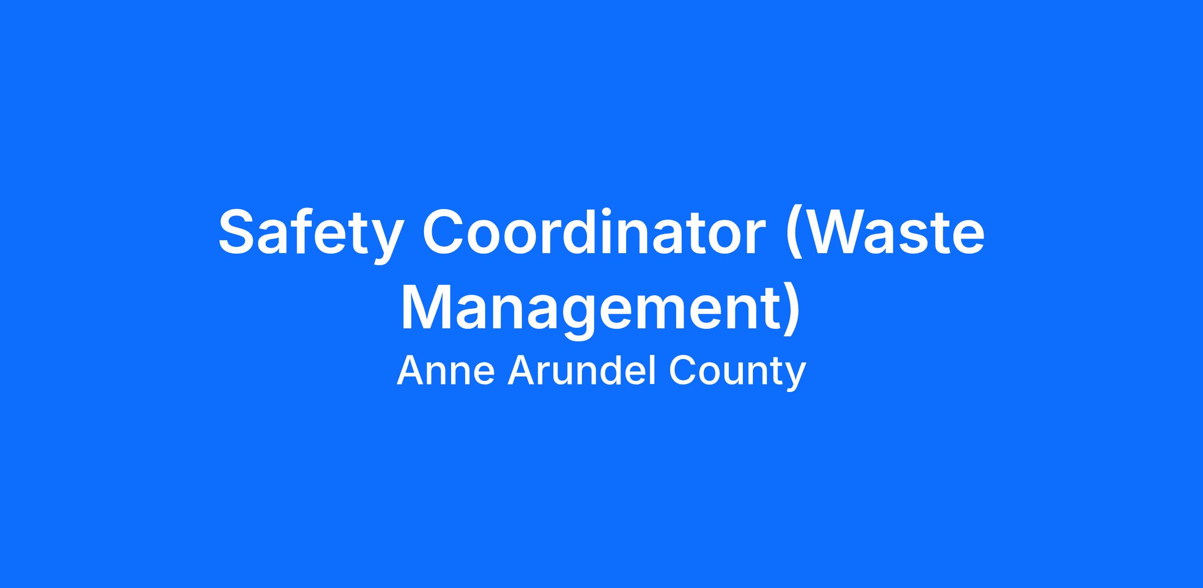 Position Description This position announcement will be used to fill a full-Time, permanent, Safety Coordinator position within the Anne Arundel County Department of Public Works’ Bureau of Waste Management Services (Bureau). This position will provide technical program support for the Bureau’s solid waste facility operations and DPW’s Safety and Security program.NATURE AND VARIETY OF WORKWork involves responsibility for the identification of hazardous workplace conditions and the investigation of injuries and accidents arising from county operations. Work also involves the development and implementation of programs designed to reduce riskexposure through compliance with OSHA and MOSH regulations and other Federal and State statutes and regulations. Work is performed with independence in assigned areas of responsibility under the direction and supervision of a superior. Work is reviewedthrough conferences and evaluation of programs and activities for results obtained. Examples of Duties and Knowledge, Skills and Abilities (Note: The duties and responsibilities enumerated in this class specification are for the purpose of determining a common set of minimum qualifications and salary level for all positions in this class. They are not intended to include all of the essential job functionsof all positions in the class.)Conducts workplace accident and incident investigations, as well as formal and informal safety and security inspections to identify potential hazards; prepares and recommends practical solutions to eliminate hazardous conditions in the workplace.Identifies needs for safety and security training; plans, develops, and presents training and instructional materials to a wide group of stakeholders.Identifies hazards and shepherds them through all stages of the remediation cycle.Is a Subject Matter Expert (SME) providing guidance and direction on regulatory and program requirements, including working with frontline employees and supervisors to co-develop work practices which meet all OSHA, MOSH and other regulatory requirements and ensure the unit’s core deliverables are intact.Assists in the development of safety and security policy and procedures, emergency operations plans and industrial workplace safety plans. Manages the implementation of policies and program elements as directed.Advises operating units of hazardous field working conditions; stops field operations where danger is imminent.Follows up on workplace inspections to ensure corrective action is taken.Follows up on inspections to ensure corrective action is taken.Organizes and coordinates protective and safety equipment programs; coordinates distribution of equipment and monitors use to ensure compliance with OSHA & MOSH standards.Meets with vendors and suppliers of safety equipment; recommends bid specifications and equipment selection.Administers essential program elements through the management of Safety Committees and working groups.Reviews incidents reports to determine if corrective action should be taken to eliminate the causes of incidents; interviews employees and supervisors to gather additional information and maintain safety awareness.Recommends appropriate actions to ensure safety standards and codes are met.Prepares and maintains required reports, statistics, and records.Knowledge of OSHA and MOSH regulations and Emergency Action Planning and ICS principles; participates in Emergency Operation planning and activities.Performs related work as required.KNOWLEDGE, SKILLS, AND ABILITIESKnowledge of relevant equipment, policies, procedures, and strategies to promote effective local, state, or national security operations for the protection of people, data, property, and institutions.Knowledge of Federal, State, and County safety requirements, including OSHA and MOSH regulations.Considerable knowledge of the methods, materials, principles, and practices of worker safety education.Considerable knowledge of the principles of risk management and the principles of loss control and management of risk exposures common to County operations. Ability to detect hazardous conditions, identify causative factors of accident and injuries, and to make sound recommendations for their correction.Ability to plan, design, and implement an effective worker/workplace safety program.Ability to prepare and maintain required statistics, records, and reports using various automated systems (e.g.; MS Suite-PowerPoint, Excel, SharePoint/ Word, etc.).Ability to establish and maintain effective working relationships with co-workers, other county departments, and the public.Ability to communicate effectively, both orally and in writing.Ability to prepare and maintain required statistics, records, and reports. Minimum Qualifications Education: Graduation from an accredited four-year college or university with major course work in safety management and program developmentExperience: One ( 1 ) or more years of experience in risk management, safety education, or training.Additional Requirements: A valid non-commercial Class C motor vehicle operator's license. NOTE: Graduation from an accredited four-year college or university with major course work in safety management and program development may be substituted on a year- for-year basis with up to four (4) additional years of experience in risk management, safety education, or training for a total of five (5) or more years of experience in risk management, safety education, or training. Supplemental Qualifications Preference will be given to applicants who possess: 2. Two (2) years of experience in industrial or workplace safety field to include policy & procedure development, implementation and training.3. Experience with hazard assessment, job safety analysis, and/or safety compliance audits.