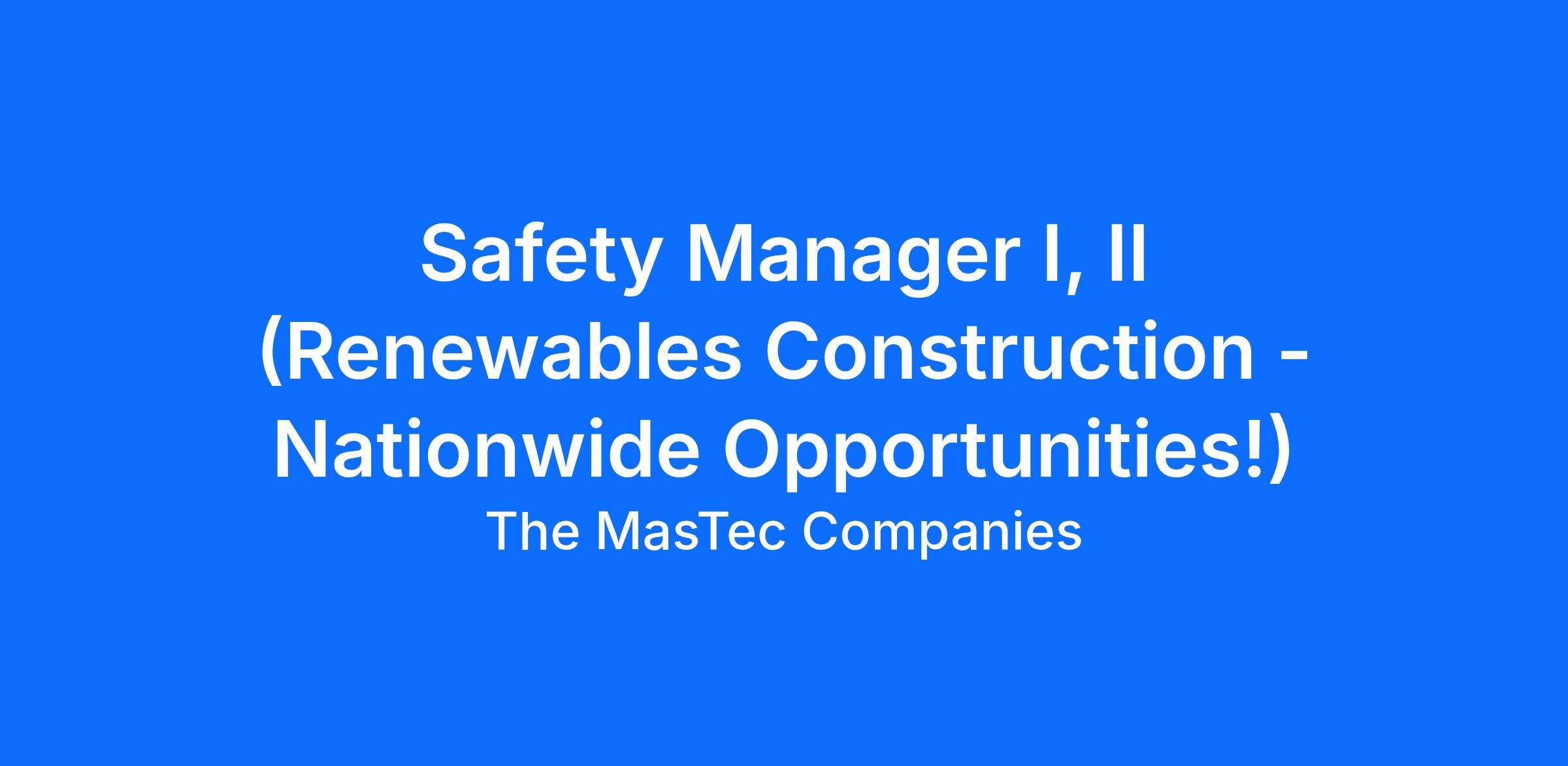Overview Join the movement to power a cleaner future. We’re seeking experienced and driven Renewables Safety Managers. As a Safety Manager you will be responsible for participating in the planning, organizing, and implementing the company’s Safety Program at construction projects while ensuring compliance with federal, state and corporate environmental, health and safety regulations. Location & Travel Details: You’ll get the opportunity to travel across the US, helping our team build renewable projects. This is a traveling position (up to 100%), where you will be onsite at a project location. You have the potential to be placed on a project site located in any state throughout the US. You’ll spend 8-12 months on average per project. We offer designated daily per diem in addition to base pay to support and help you cover living expenses. A vehicle will be provided. This position is eligible for routine travel home (rotation) from the jobsite. Company Overview MasTec Renewables, comprised of Wanzek Construction, IEA Constructors, and White Construction, combines over 20 years of experience in renewable energy construction. Depending on your position and project, you may work for one or more of our companies over your career with us. Join one of the largest construction firms in the country (Engineering News-Record [ENR]: #1 in Power, #17 Top 50 Domestic Heavy Contractors, #20 Transportation Contractor). We embrace diverse perspectives among our employees and across all levels of our business, including our suppliers, community partners, and clients. We have built a multidimensional workforce that brings valuable differences in perspectives, work ethics, and approaches to our organization. By collaborating across departments, we foster innovation and encourage everyone—from interns to executives—to share their ideas and make an impact. Our goal is to create a respectful work environment where all employees feel valued, included, and empowered to become innovative leaders in our industry. The MasTec Renewables market sector is part of the MasTec Clean Energy & Infrastructure business segment. MasTec’s Clean Energy & Infrastructure (CE&I) segment generates over $4 billion in annual revenue, providing construction services across industrial, renewables and infrastructure sectors. Our renewables sector focuses on solar, wind and battery storage. Sustainability and safety are foundational to our culture and influence everything we do. MasTec, a minority-owned Fortune 500 company, has shaped the construction industry for more than 90 years. With over 35,000 employees and 400 offices nationwide, we provide flexibility and career growth in dynamic work environments. Responsibilities Essential Job Functions:Oversee and manage all aspects of the safety program on complex construction projectsConduct workplace safety checks to identify safety infractions and initiate Stop Work Authority when necessaryGive direction and guidance to onsite construction staff on corrective action for safety infractions to eliminate hazards and mitigate future riskProvide Safety Leadership creating enthusiasm and participation among management and craft workers, resulting in excellent safety performanceParticipate in the jobsite R4 Safety Committee as required and monitor results for presentation to site managementChair or assist in site safety committee meeting and R4 meetings, review R4 documents, and present info to managementAttend the weekly general safety meeting, weekly supervisor’s safety meeting, and daily Gang box meetings Communicate between the company and client management regarding safety mattersInput and review incident reportsMonitor all site safety reports and maintain site bulletin board for postings.Track, compile and present leading indicator statistics to the project leadership teamMaintain jobsite first aid and emergency response suppliesAdminister drug and alcohol testing on siteSpend 60% of time in the field on job sitesIdentify workplace safety hazards and take all necessary steps to consult and guide site management in corrective action to eliminate or minimize them. Document actions on daily activity reportImplement the Zero Injury System of safety excellence on the projectsUnderstand and implement safety policies and proceduresUnderstand all environmental permitting regulations and measures to ensure complianceImplement the company environmental program and perform weekly inspections as requiredUnderstand all environmental permitting regulations and measures to ensure complianceLead site inspections and testing as necessary and compile DFR in timely fashionReview safety program documentation, record keeping, document posting, trenching and scaffold permitting and regulatory compliance documentationParticipate in planning and implementing a Hazard Communication Program in compliance with federal, state, and the company policies, including a hazardous materials list, SDS file, container labeling, employee training, and subcontractor communicationsPresent safety emphasis to site employees as identifiedParticipate in and assist in emergency responsesPartner with management in writing, organizing and implementing the job site safety plansWork directly with Project Manager and management team to develop, implement and maintain an effective site-specific safety planWork with Safety Department on overall program, project training needs, injury management, citation management, OSHA/MSHA reporting requirements and other applicable mattersOversee the company injury management program, set up a working relationship with a local physician, explaining the company philosophy of managing accidents and provide for basic first aid trainingCoordinate and present safety training to support the company and client requirements. Topics may include Planning, Documentation, New Hire Orientation, Fall Protection, Confined Space, Lockout/Tagout, Respiratory, etc.Invest time and effort in enhancing apprent