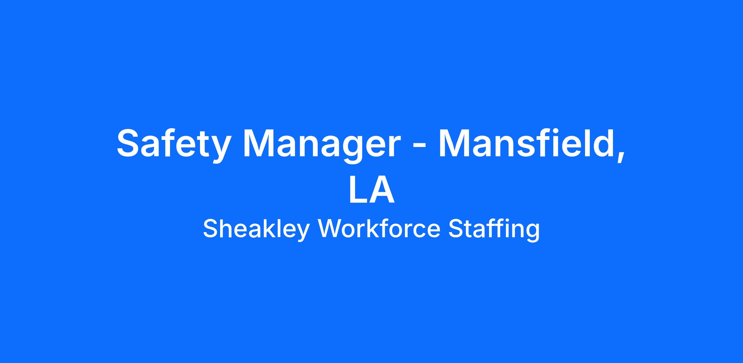Location: Mansfield, LADuration: 5+ years (Start: Immediate Need)Type: 1099 Contractor Position Details Hourly Rate: $46.50/hr Per Diem: $125/Day on seven days Completion Bonus: $150/month Pay Frequency: Weekly Schedule: Monday-Friday | 40 hrs/week Project Scope The safety manager will be responsible for safety and compliance oversight of all Abatement of asbestos and Demolition of a power plant Qualifications OSHA 30 5 years of construction safety experience Abatement (asbestos) / Demolition Experience Key Responsibilities Conduct regular safety audits, inspections, and risk assessments Support incident investigations, reporting, and corrective action implementation Deliver safety training and orientation for employees, subcontractors, and new hires Collaborate with project teams to proactively identify and mitigate risks Maintain accurate safety performance, incident, and compliance documentation Promote a safety-first culture across all project levels Skills & Knowledge Skills: Strong public speaking and communication abilities Proficient in Microsoft Office (Outlook, Word, Excel) Excellent organizational and multitasking abilities Ability to work independently and collaboratively Professionalism and discretion with sensitive information Knowledge: In-depth understanding of EHS and industry regulatory standards Ability to effectively communicate safety principles and enforce compliance Equal Opportunity Employer Sheakley is committed to providing equal employment opportunities to all individuals, regardless of race, color, religion, age, sex, marital status, national origin, disability, or any other protected status.