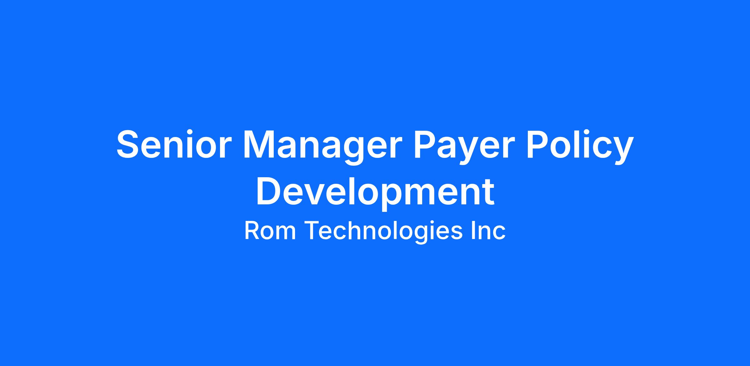 - Support the development of Payer Medical policies to ensure the Portable Connect in- home rehabilitation device is covered and paid for. Leveraging existing relationships to influence policy development and reimbursement strategies across national and regional commercial payers, integrated delivery network payers, independent physician associations, ACO’s and Government payers.