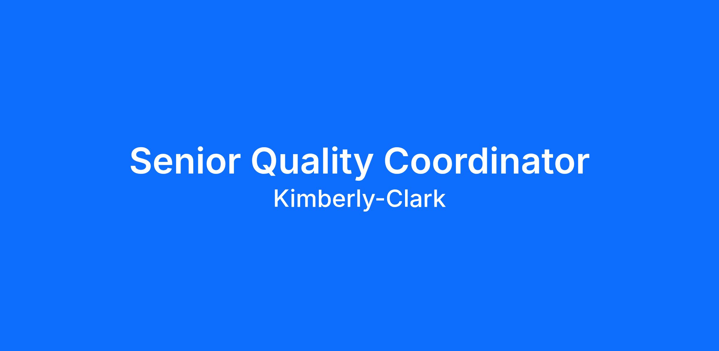 Senior Quality CoordinatorJob DescriptionAs a person, you’re a learner – a natural leader – someone who is always taking initiative to make things better and bring others along with you. You live your life in alignment with the highest values of integrity and quality, always ensuring your responsibilities become a long-term success story. In this role, you’ll help us deliver better care for billions of people around the world. It starts with YOU. In this role, you will:Provide access to users, reviewing and analyzing usage data, preparing information for the management team regarding use of EtQ at the facility.Assist in executing internal audits, ensure the timely completion of each internal audit report, prepare information to present for Management Review.Act as a contact regarding the status of each Q-Hold, understanding the opening and closing of Q-Holds, and administration of product hold disposition processes. Perform document control for the Quality department in EtQ, including admin review of documents, and coordination of routine document reviews.Act as a key contact regarding status of CAPA and QNC at Chester, including preparing reports for Management Review.Handle pest control for the entire Chester facility, including scheduling the supplier, analyzing findings, and preparing reports for Management Review.Perform Lot File review on consumer complaints, looking for potential causes of complaints. Must be able to identify and report findings and determine relevant vs. non-relevant data.Participate in and/or assist in the completion of risk assessments as needed.About UsHuggies®. Kleenex®. Cottonelle®. Scott®. Kotex®. Poise®. Depend®. Kimberly-Clark Professional®. You already know our legendary brands—and so does the rest of the world. In fact, millions of people use Kimberly-Clark products every day. We know these amazing Kimberly-Clark products wouldn’t exist without talented professionals, like you.At Kimberly-Clark, you’ll be part of the best team committed to driving innovation, growth and impact. We’re founded on more than 150 years of market leadership, and we’re always looking for new and better ways to perform – so there’s your open door of opportunity. It’s all here for you at Kimberly-Clark.Led by Purpose. Driven by You.About YouYou perform at the highest level possible, and you appreciate a performance culture fueled by authentic caring. You want to be part of a company actively dedicated to sustainability, inclusion, wellbeing, and career development.You love what you do, especially when the work you do makes a difference. At Kimberly-Clark, we’re constantly exploring new ideas on how, when, and where we can best achieve results.In one of our quality roles, you’ll focus on winning with consumers and the market, while putting safety, mutual respect, and human dignity at the center. To succeed in this role, you will need the following qualifications:High school diploma or GED equivalency5 years or more of manufacturing work experienceUnderstanding of Good Manufacturing PracticesAdvanced analytical, verbal and written communication skillsBasic computer skills: including working knowledge in Microsoft Office, with emphasis in Word and Excel, as well as other web-based and software-based programs.Ability to effectively influence others, demonstrate strong interpersonal skills, able to adjust communication style to different audiences.Ability to utilize problem solving skills to determine root cause.Preferred Qualifications3 years or more of quality work experience preferably quality manufacturing2 years or more years previous laboratory experience at an FDA regulated facility and/or degree in applicable science fieldExperience with Document Control for Quality Control-focused documentsClose working relationships with Manufacturing and Research functions AND technical quality skills in at least two of the following areas: CAPA/problem-solving, QNC, Non-Conformance Management, Internal Audits and Pest Control Management.Experience in GE Plant Applications, Word, Excel, Outlook, SAP, ETQAbility to train others and transfer knowledgeTotal BenefitsHere are just a few of the benefits you’d enjoy working in this role for Kimberly-Clark. For a complete overview, see www.mykcbenefits.com. Great support for good health with medical, dental, and vision coverage options with no waiting periods or pre-existing condition restrictions. Access to an on-site fitness center, occupational health nurse, and allowances for high-quality safety equipment.Flexible Savings and spending accounts to maximize health care options and stretch dollars when caring for yourself or dependents.Diverse income protection insurance options to protect yourself and your family in case of illness, injury, or other unexpected events.Additional programs and support to continue your education, adopt a child, relocate, or even find temporary childcare.To Be ConsideredClick the Apply button and complete the online application process. A member of our recruiting team will review your application and follow up if you seem like a great fit for this role.In the meantime, please check out the careers website.And finally, the fine print….For Kimberly-Clark to grow and prosper, we must be an inclusive organization that applies the diverse experiences and passions of its team members to brands that make life better for people all around the world, which is why we seek to build a workforce that encompasses the experiences of our consumers. When you bring your original thinking to Kimberly-Clark, you fuel the continued success of our enterprise. We are a committed equal opportunity employer, and all qualified applicants will receive consideration for employment without regard to race, color, religion, sex, national origin, disability status, protected veteran status, sexual orientation, gender identity, age, pregnancy, genetic information, citizenship status, or any other characteristi
