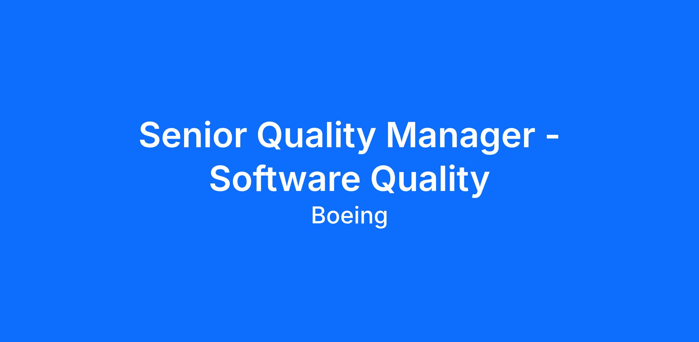 Senior Quality Manager - Software QualityCompany:The Boeing CompanyBoeing Defense, Space & Security (BDS) is seeking a Senior Manager - Software Quality Engineering to join our Quality & Lean Organization in Multiple Locations! This is an on-site position and may be located at one of the following locations: Berkeley, MO; Mesa, AZ or Ridley Park, PA. In this role you will lead large, complex organizational units focused on software quality across multiple programs and divisions. This strategic role shapes company-wide software quality strategy, policy, and enterprise-level initiatives with high visibility and business impact. Position Responsibilities: Lead and develop a cross-functional team of managers and employees responsible for software quality engineering. Define and execute organizational-level plans, policies, and strategies that drive software quality, safety, and compliance across the Company’s product lines. Guide development of long-term business and technical strategies; influence company policy and recommendations for budgets, resource allocation, and risk management. Oversee and approve enterprise-scale verification approaches, qualification strategies, and lifecycle processes for safety-critical and mission-critical systems. Ensure alignment of supplier ecosystems and technical partners to organizational quality standards; own high-level supplier performance and escalation management.Lead high-impact continuous improvement initiatives (value stream assessments, enterprise automation strategy, cross-program defect elimination). Serve as primary liaison with senior executives, customers, and external stakeholders on matters of organizational significance. Set and monitor organization-wide KPIs for software quality, delivery risk, and compliance; ensure realistic budgets and schedules are set and met. Basic Qualifications (Required Skills/Experience): Bachelor of Science in Engineering, Engineering Technology, Manufacturing Technology, Computer Science, Data Science, Mathematics, Physics, Chemistry, or non-US equivalent qualifications directly related to the work statement 5 + years managing managers (demonstrated leadership of multiple layers of management) 5 + years of experience in software engineering, quality assurance, or related disciplines, with progressive leadership responsibilities 5 + years of experience influencing executive decisions, shaping organizational policy, and delivering measurable enterprise improvements 5 + years of experience demonstrating executive presence with exceptional written and oral communication skills; able to influence senior leaders, present complex technical/organizational matters clearly, and lead high-stakes discussions 5+ years of experience managing large budgets, multi-program resource planning, and senior stakeholder communications Preferred Qualifications (Desired Skills/Experience): Active U.S. security clearance Experience with safety-critical development standards (e.g., DO-178B/C or equivalent) Practical experience with Agile software development and CI/CD pipelines Background in Software Quality Engineering practices (test strategy, test automation, static analysis, code reviews) Familiarity with DevSecOps tooling and secure software development lifecycle (SAST/DAST, automated builds, artifact management) Experience coordinating supplier quality assurance for embedded or avionics software Drug Free Workplace: Boeing is a Drug Free Workplace where post offer applicants and employees are subject to testing for marijuana, cocaine, opioids, amphetamines, PCP, and alcohol when criteria is met as outlined in our policies. Travel: This position may require up to 40% travel. At Boeing, we strive to deliver a Total Rewards package that will attract, engage and retain the top talent. Elements of the Total Rewards package include competitive base pay and variable compensation opportunities. The Boeing Company also provides eligible employees with an opportunity to enroll in a variety of benefit programs, generally including health insurance, flexible spending accounts, health savings accounts, retirement savings plans, life and disability insurance programs, and a number of programs that provide for both paid and unpaid time away from work. The specific programs and options available to any given employee may vary depending on eligibility factors such as geographic location, date of hire, and the applicability of collective bargaining agreements. Pay is based upon candidate experience and qualifications, as well as market and business considerations. Summary pay range: USD $233,750 –$316,250 Language Requirements:Not ApplicableEducation:Bachelor's Degree or EquivalentRelocation:This position offers relocation based on candidate eligibility.Export Control Requirement:This position must meet U.S. export control compliance requirements. To meet U.S. export control compliance requirements, a “U.S. Person” as defined by 22 C.F.R. §120.62 is required. “U.S. Person” includes U.S. Citizen, U.S. National, lawful permanent resident, refugee, or asylee.Safety Sensitive:This is not a Safety Sensitive Position.Security Clearance:This position requires the ability to obtain a U.S. Security Clearance for which the U.S. Government requires U.S. Citizenship. An interim and/or final U.S. Secret Clearance Post-Start is required.Visa Sponsorship:Employer will not sponsor applicants for employment visa status.Contingent Upon Award ProgramThis position is not contingent upon program awardShift:Shift 1 (United States of America)Stay safe from recruitment fraud! The only way to apply for a position at Boeing is via our Careers website. Learn how to protect yourself from recruitment fraud - Recruitment Fraud WarningBoeing is an Equal Opportunity Employer. Employment decisions are made without regard to race, color, religion, national origin, gender, sexual orientation, gender identity, age, physical or mental disability, genetic factors, militar