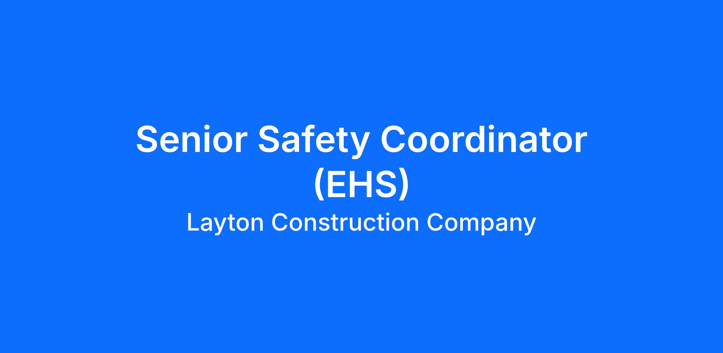 DescriptionThe Senior Safety Coordinator actively supports Layton Construction project teams to ensure the effective implementation of environmental, safety, and health standards at the site level. This role requires a strong foundation in construction safety practices and demonstrated commitment to continuous learning and professional development.DutiesChampions “The Layton Way” by delivering predictable outcomes for internal teams, external teams, and customers.Ensures that “Constructing with Integrity” is delivered by working with honesty, unity, safety, and quality of work. Monitors safety conditions and works with the project team to ensure consistent enforcement of OSHA and Layton Construction standards and policies.Assists the ESH Manager in investigating accidents and serious near misses, collecting initial data relevant to the investigation.Monitors workers’ compensation issues on Layton projects and work closely with the ESH Manager to collect and report timely and accurate information.Conducts or assists project teams with site-specific safety orientations.Participate in pre-construction meetings for Layton projects, highlighting project safety needs and issues.Assists project teams and case managers with injury management to ensure cost-effective industrial medical care is provided.Conducts industrial hygiene surveys as necessary to detect gases and noise and conducts respirator fit tests.Provides support as required to VP-Field Operations and Human Resources to ensure compliance with FMLA, ADA, and Workers’ Compensation law.Provides safety-related training to employees and subcontractor personnel at the site level as assigned.Participates in monthly corporate Safety Committee meetings.Performs other related duties as assigned. QualificationsBA/BS preferred with a minimum of 3 years of experience in construction or industrial health and safety programs.Demonstrated practical knowledge and documented continuing education in the field of construction safety.Must possess a certificate of completion for the OSHA 510 – Occupational Safety and Health Standards for the Construction Industry.Certification in First Aid, CPR, and AED, with evidence of completion within the last two years.Completed OSHA 30-hour training for construction AND Safety Trained Supervisor (STS) certification.Strong interpersonal skills and the ability to maintain effective working relationships.Clear and effective verbal and written communication skills, with strong organization and grammar.Ability to perform essential job duties accurately and safely, with or without reasonable accommodation.Proficient in understanding and conveying English commands, questions, and safety-related instructions.Devoted to continuous learning and demonstrates a strong commitment to developing and maintaining core ESH competencies. Benefits - Layton Construction offers the following benefits for this position, subject to applicable eligibility requirements: Medical Insurance, Dental Insurance, Vision Insurance, Health Savings Account, Healthcare Flexible Spending Account, Dependent Care Flexible Spending Account, 401(k) retirement plan with employer match, Life & AD&D Insurance, Long-term Disability Insurance, Short-term Disability Insurance, Critical Illness Insurance, Accident Insurance, Hospital Indemnity Insurance, Home & Auto Insurance, Family Support, Pre-tax Paid Parking/Public Transportation, Paid time off, Time Away Benefits, Paid Holidays, Group Legal, Employee Stock Purchase Plan, Identity Theft Protection, Group Legal, Pet Insurance, Employee Assistance Program.EEO Statement - Layton Construction is an equal opportunity employer. We evaluate qualified applicants without regard to race, color, religion, sex, sexual orientation, gender identity, national origin, disability, veteran status, and other legally protected characteristics.