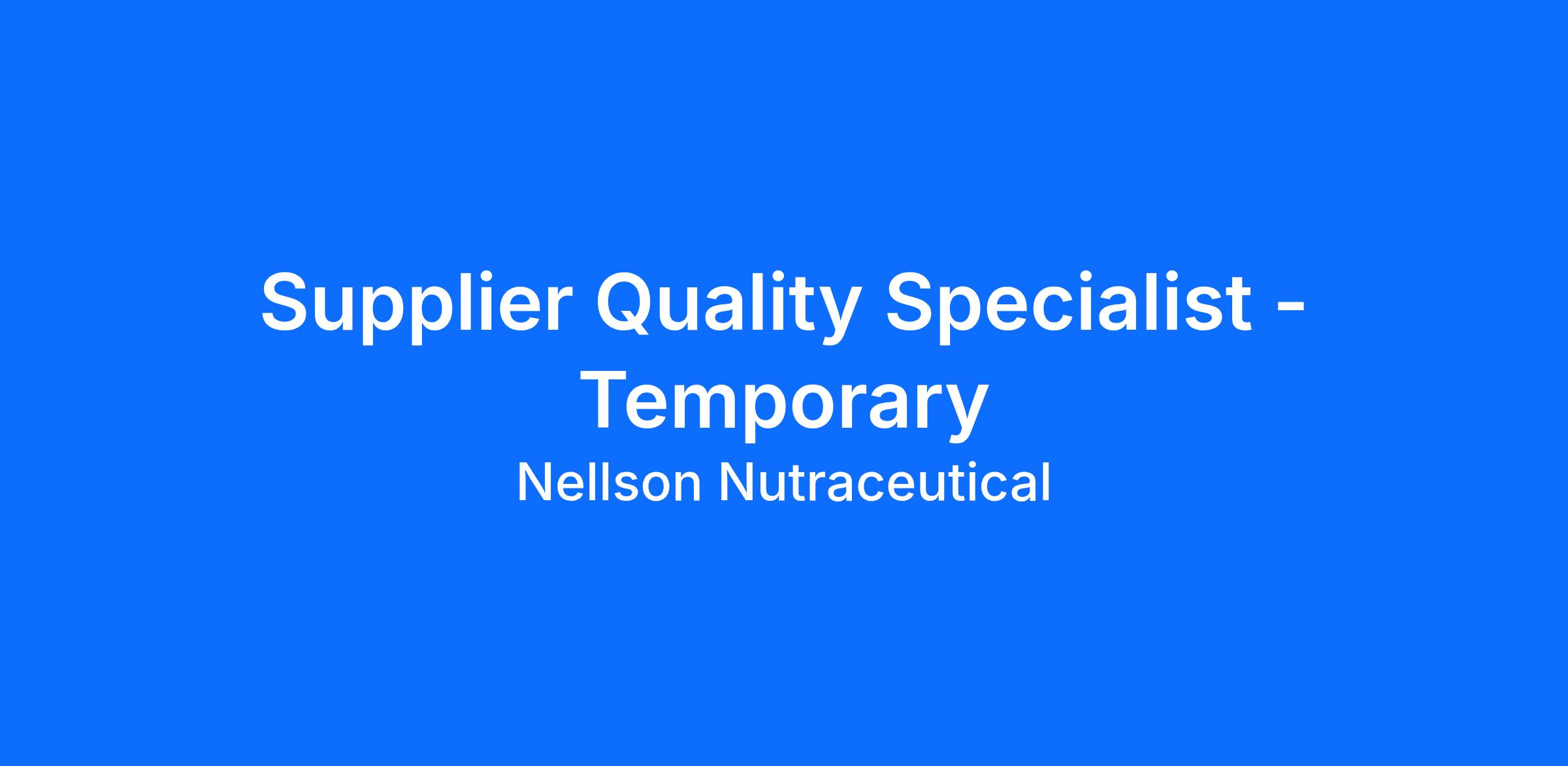 ***Temporary Position Join NELLSON and Become Part of a Winning Team of Professionals!We currently have an immediate opportunity for a Supplier Quality Specialist.POSITION SUMMARYThe Supplier Quality Specialist will work collaboratively with key stakeholders to perform new supplier and new raw material evaluations for the supplier approval process. This position has the ultimate responsibility in working with the internal teams, suppliers and customers in maintaining the supplier quality management database, an approved supplier database and raw ingredient risk analysis results along with approving technical food safety documents.Technical skills/Experience:ESSENTIAL FUNCTIONS / JOB DUTIESWork collaboratively with the internal teams, suppliers and customers to gather technical documents / info. for the supplier approval process.Perform new supplier and/or raw material (ingredient and packaging) evaluation and send approval recommendations to Sr. Supplier Quality Manager or Director of Food Safety & Hygiene.Maintain supplier quality management database including technical documents, approved supplier database, raw ingredient risk analysis results, etc.Serve as the raw material technical liaison for the internal teams, suppliers and customers.Special assignments / projects as assigned by Sr. Supplier Quality Manager or Director of Food Safety & Hygiene.Minimum Qualifications (Must have)BS degree in food science/related field or relevant work experience.3 - 5 years of FDA and/or USDA food / beverage manufacturing QA & QC experience.3 - 5 years of working knowledge of HACCP / Food Safety Plan and pre-requisite programs such as raw material controls, cGMP, process / production controls, pest control, sanitation and maintenance.Basic understanding of food ingredients and packaging.Able to read / understand technical documents such as audit reports, HACCP plans, CoAs, specification sheets, and microbiological testing data.HACCP certified or equivalent.Internal GMP/food safety audit experience. Proficient in MS Office programs Database management experience. Able to travel up to 5% as needed. Experience / Skills / CertificationsFSMA Preventive Controls for Human Food / PCQI certified.Experienced in auditing and qualifying suppliers.Familiar with GFSI based food safety certification and standards. At Nellson, we invest in highly talented individuals and provide them with opportunities to continuously learn and grow to realize their full potential. Our state-of-the-art facilities, warehouses, and corporate offices offer a knowledgeable and professional environment to employees. By joining our performance-oriented team, you will be able to put your expertise to use and positively impact many groups across our production process. Nellson is proud to be an Equal Opportunity Employer. All applicants receive consideration without regard to race, color, religion, gender, national origin, age, disability, veteran status or any other status protected by law. You may visit our website at www.nellsonllc.com to view current job openings.