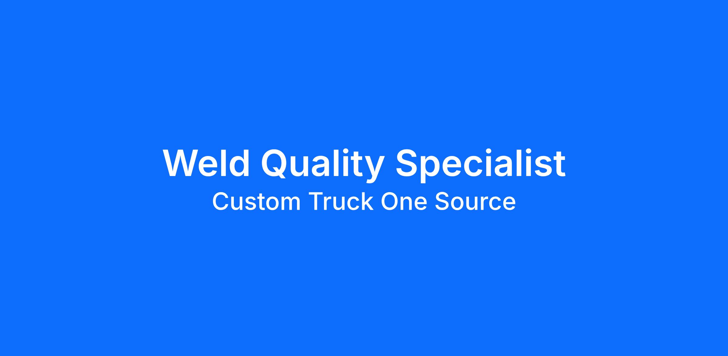 Welding Quality Specialist (CWI Required)Job Description Department: QualityReports To: Quality Control SupervisorFLSA Status: Exempt (Salary) Date 02/24/2026Location: Kansas City, MO Summary:We are seeking an experienced Welding Quality Specialist (CWI) to serve as the technical authority and owner of the company’s welding program. This role is responsible for establishing, governing, and maintaining welding standards in accordance with AWS D1.1. The position exercises independent judgment in interpreting code requirements, approving welding procedures, and making decisions that materially impact compliance, liability, and operational direction. The Welding Quality Specialist will focus primarily on welding governance, systems development, and program oversight while partnering with Production, Engineering, and Quality leadership to ensure scalable, compliant fabrication practices. Essential Duties and Responsibilities:Own and govern the company’s welding program, including development, qualification, and revision control of WPS, PQR, and welder qualification recordsExercise independent authority to interpret and apply AWS D1.1 requirements and approve or reject welding procedures and practicesMake technical decisions impacting structural compliance, regulatory adherence, and operational riskLead welding program governance, documentation systems, and internal compliance auditsEstablish and maintain welder continuity tracking and qualification standardsPerform and oversee visual weld inspections to ensure compliance with engineering drawings and code requirementsIdentify process gaps and implement corrective actions to reduce weld-related nonconformanceStandardize welding parameters and equipment settings across production linesCoordinate NDT activities and review acceptance criteriaTrain and coach welders and inspectors on WPS adherence and quality expectations Required Skills and Qualifications:Active CWI certification5+ years structural welding experienceDemonstrated experience developing or qualifying WPS/PQRStrong knowledge of AWS D1.1Blueprint, weld symbol, and GD&T proficiency Preferred Skills and Qualifications:Experience implementing welding quality systems in a growing fabrication environmentPrior experience supporting ISO 9001 environmentsExperience coordinating third-party NDT Working Conditions:Work is conducted inside and outside during all-weather typesThe job is performed under extreme temperature variations and some hazardous conditionsWalking, climbing, standing, sitting, and lifting are requiredTasks may involve moderate to heavy physical labor Physical Requirements:Occasional lifting, carrying, pushing, and/or pulling; some climbing and balancing on ladders and platforms, significant stooping, kneeling, crouching, and/or crawling throughout an 8-12 hour dayAbility to work with hands and perform routine lifting, up to 50 lbs.Stand for extended periods of time. This job description is not designed to cover or contain a comprehensive listing of activities, duties or responsibilities that are required of the employee. Duties, responsibilities and activities may change, or new ones may be assigned at any time with or without notice. I have read and understand all the requirements of this position. I can perform the essential functions of this job, with or without reasonable accommodation. Custom Truck One Source is an Equal Opportunity Employer and provides equal employment opportunities to all employees and applicants for employment and prohibits discrimination and harassment of any type without regard to race, color, religion, age, sex, national origin, disability status, genetics, protected veteran status, sexual orientation, gender identity or expression, or any other characteristic protected by federal, state or local laws.
