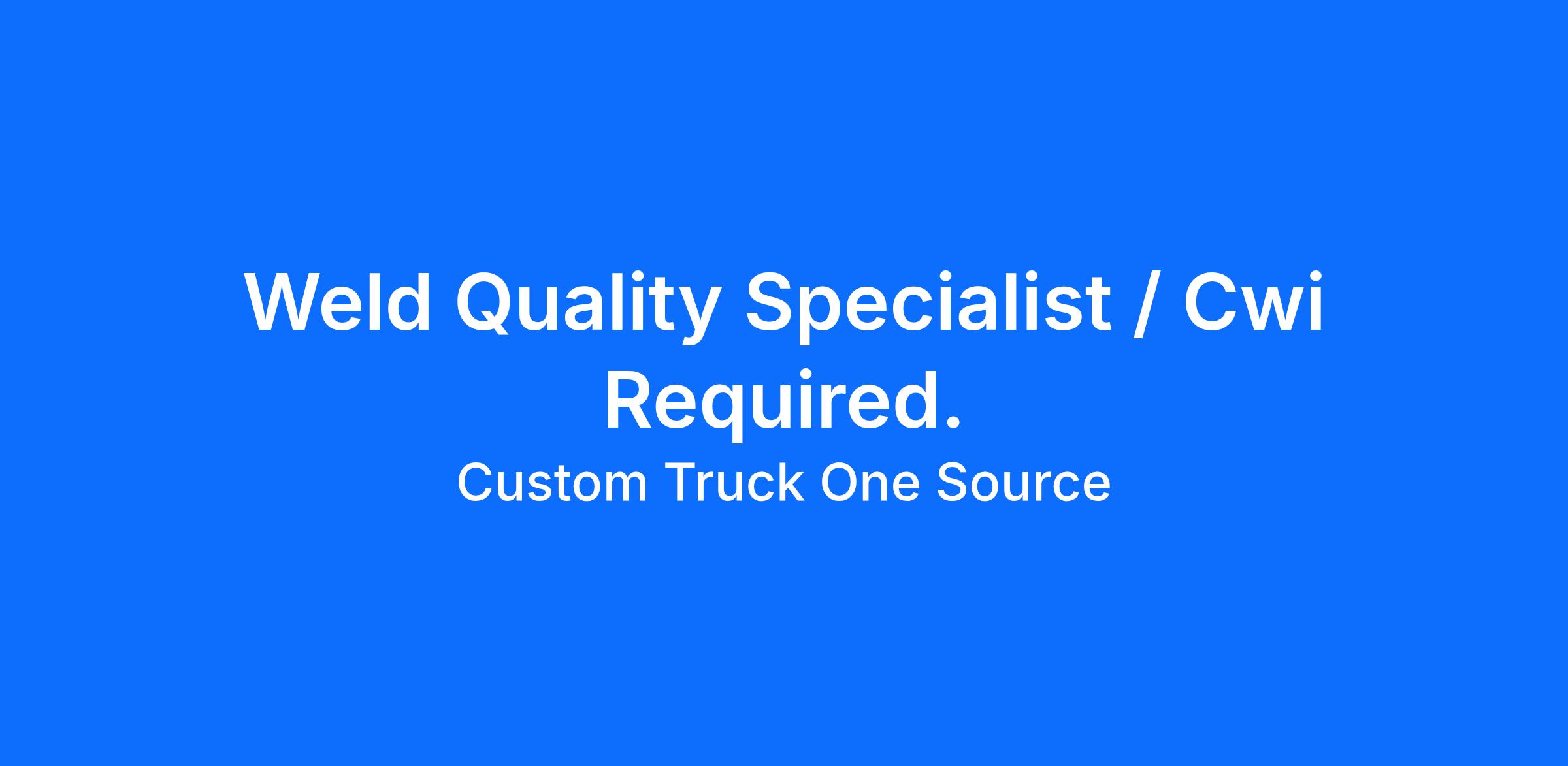 Welding Quality Specialist (CWI Required)Job Description Department: QualityReports To: Quality Control SupervisorFLSA Status: Exempt (Salary) Date 02/24/2026Location: Kansas City, MO Summary:We are seeking an experienced Welding Quality Specialist (CWI) to serve as the technical authority and owner of the company’s welding program. This role is responsible for establishing, governing, and maintaining welding standards in accordance with AWS D1.1. The position exercises independent judgment in interpreting code requirements, approving welding procedures, and making decisions that materially impact compliance, liability, and operational direction. The Welding Quality Specialist will focus primarily on welding governance, systems development, and program oversight while partnering with Production, Engineering, and Quality leadership to ensure scalable, compliant fabrication practices. Essential Duties and Responsibilities:Own and govern the company’s welding program, including development, qualification, and revision control of WPS, PQR, and welder qualification recordsExercise independent authority to interpret and apply AWS D1.1 requirements and approve or reject welding procedures and practicesMake technical decisions impacting structural compliance, regulatory adherence, and operational riskLead welding program governance, documentation systems, and internal compliance auditsEstablish and maintain welder continuity tracking and qualification standardsPerform and oversee visual weld inspections to ensure compliance with engineering drawings and code requirementsIdentify process gaps and implement corrective actions to reduce weld-related nonconformanceStandardize welding parameters and equipment settings across production linesCoordinate NDT activities and review acceptance criteriaTrain and coach welders and inspectors on WPS adherence and quality expectations Required Skills and Qualifications:Active CWI certification5+ years structural welding experienceDemonstrated experience developing or qualifying WPS/PQRStrong knowledge of AWS D1.1Blueprint, weld symbol, and GD&T proficiency Preferred Skills and Qualifications:Experience implementing welding quality systems in a growing fabrication environmentPrior experience supporting ISO 9001 environmentsExperience coordinating third-party NDT Working Conditions:Work is conducted inside and outside during all-weather typesThe job is performed under extreme temperature variations and some hazardous conditionsWalking, climbing, standing, sitting, and lifting are requiredTasks may involve moderate to heavy physical labor Physical Requirements:Occasional lifting, carrying, pushing, and/or pulling; some climbing and balancing on ladders and platforms, significant stooping, kneeling, crouching, and/or crawling throughout an 8-12 hour dayAbility to work with hands and perform routine lifting, up to 50 lbs.Stand for extended periods of time. This job description is not designed to cover or contain a comprehensive listing of activities, duties or responsibilities that are required of the employee. Duties, responsibilities and activities may change, or new ones may be assigned at any time with or without notice. I have read and understand all the requirements of this position. I can perform the essential functions of this job, with or without reasonable accommodation. Custom Truck One Source is an Equal Opportunity Employer and provides equal employment opportunities to all employees and applicants for employment and prohibits discrimination and harassment of any type without regard to race, color, religion, age, sex, national origin, disability status, genetics, protected veteran status, sexual orientation, gender identity or expression, or any other characteristic protected by federal, state or local laws.